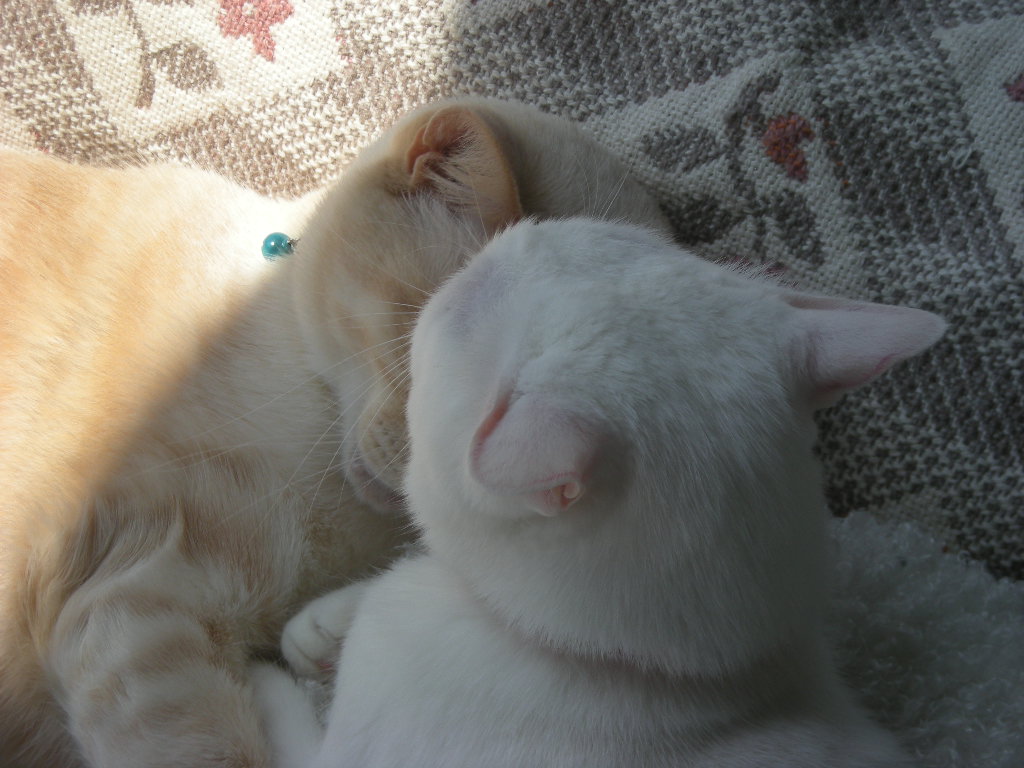 オークと兄妹。いつか白で碧眼の子をと願っていた娘が里親募集のサイトで見つけた子。うちに来たときには真っ白だったが、麿眉が発現。
