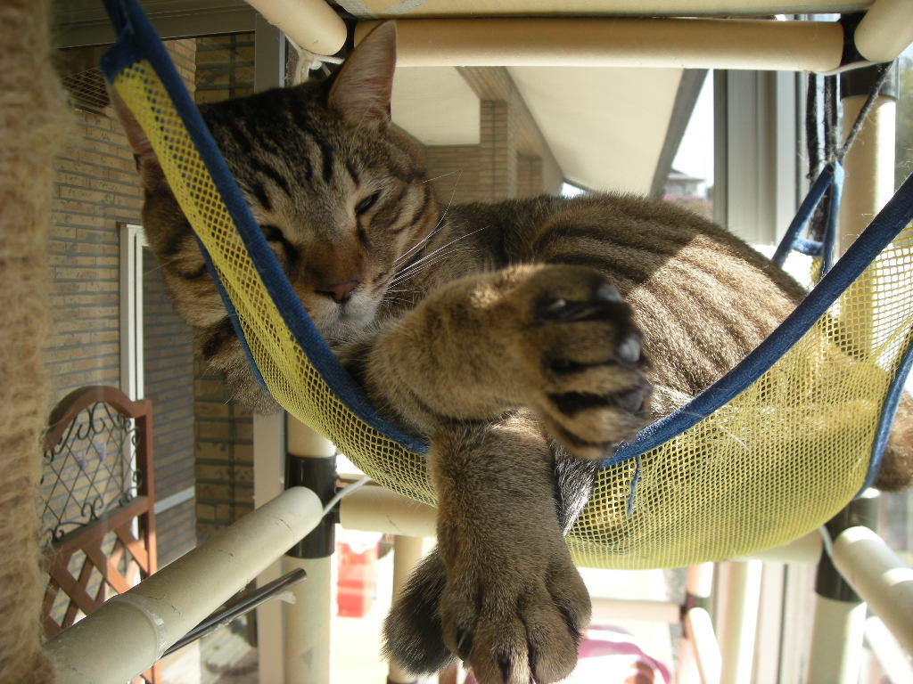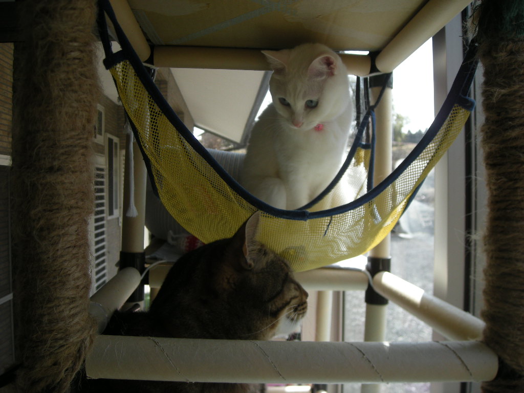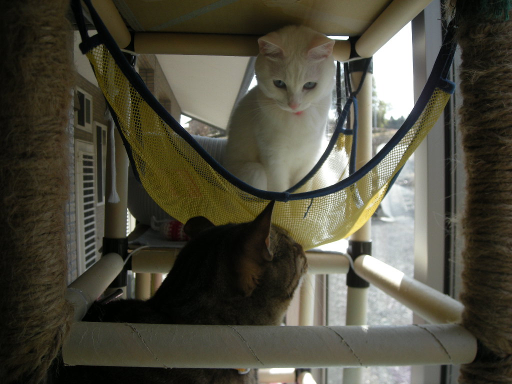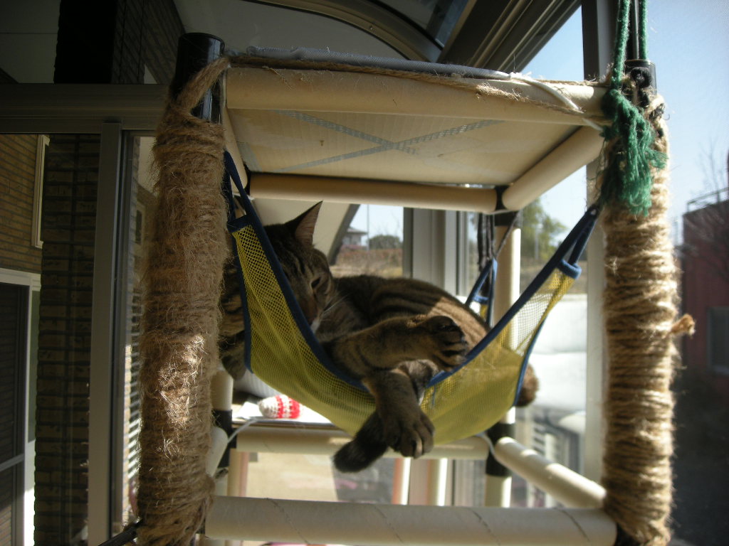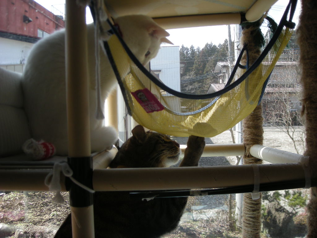 アクアとオーク。どちらも好きなハンモックですが、時々寝る以外にも使われます。