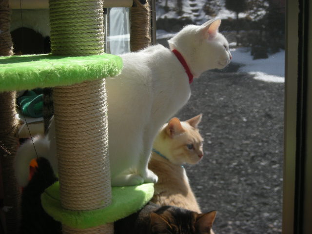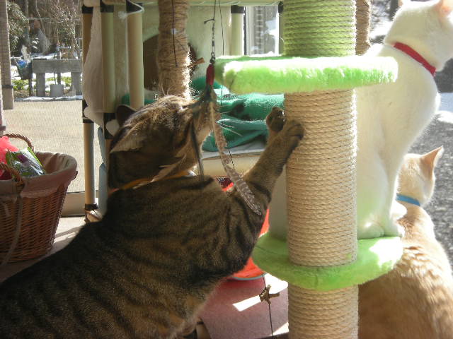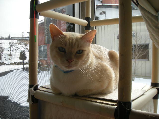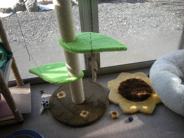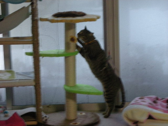 うちの猫も結構大きいけどな、と思いつつ、組み立ててみたんですが、このタワー、そもそもデザインにこだわりすぎて、頭でっかち。