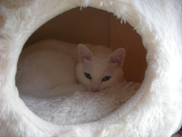 オークと兄妹。いつか白で碧眼の子をと願っていた娘が里親募集のサイトで見つけた子。うちに来たときには真っ白だったが、麿眉が発現。