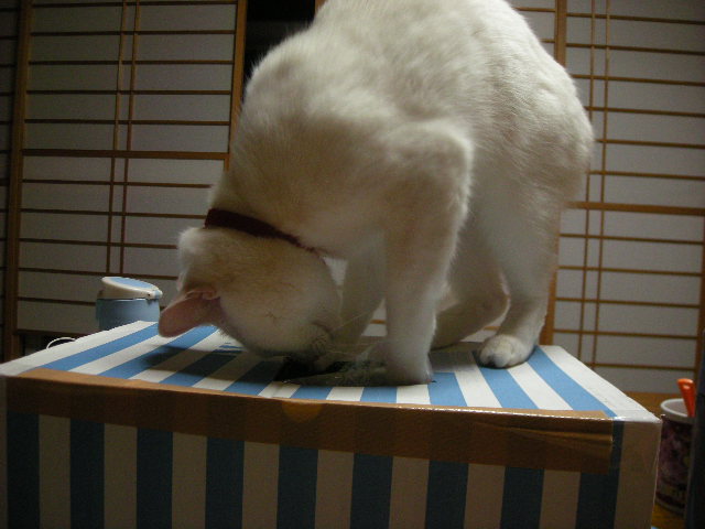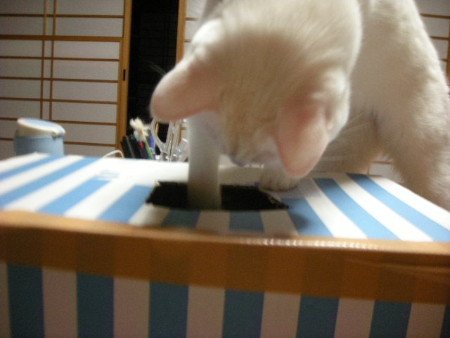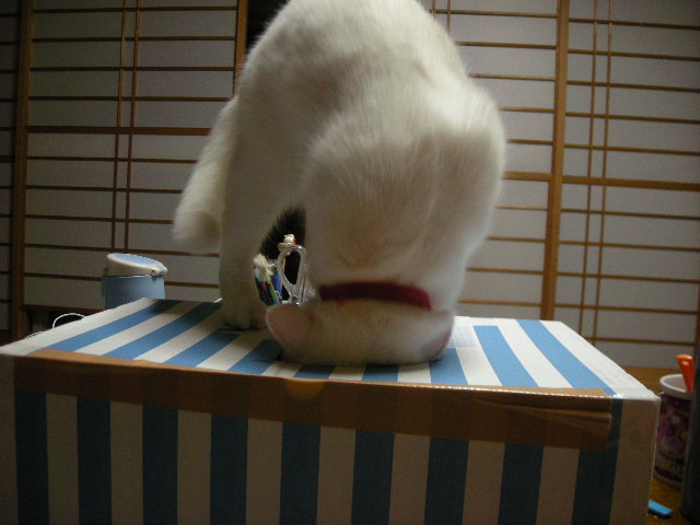 仕方なく横にも穴を開けてやったら、ネズミをはじき出す遊びになりました。