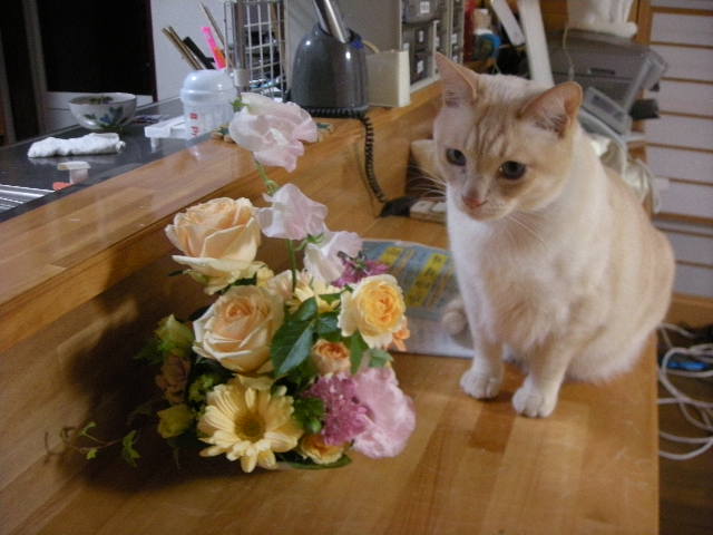 テーブルの花をちゃっかり頂いてきました。