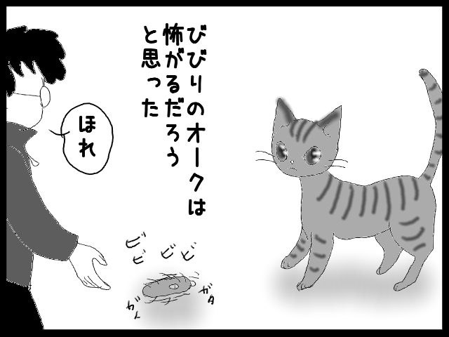 オークがブブブっと言うのが好きなので、喜びそうなおもちゃをと購入したのがブブブっと言いながら転がるボールのおもちゃ。小犬用。