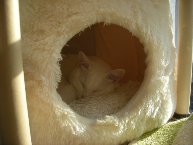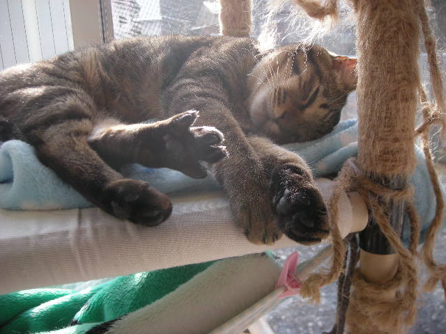 泥だらけで保護され、3歳にして去勢手術を受ける。飼い猫の経験があるのか、どれくらい野良猫だったのか、過去は一切不明。