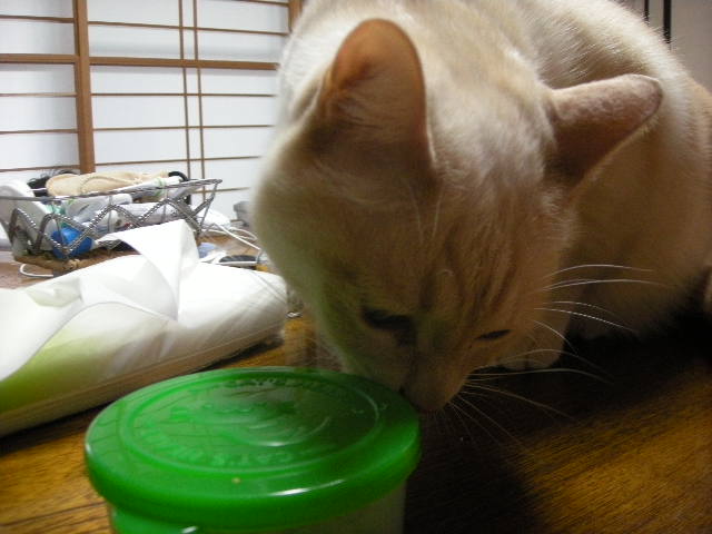 「ネコの気持ち」に付いてきた容器におまけのフード。