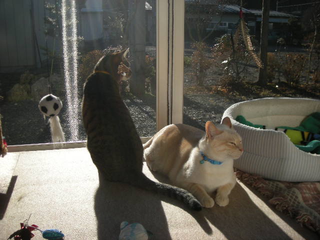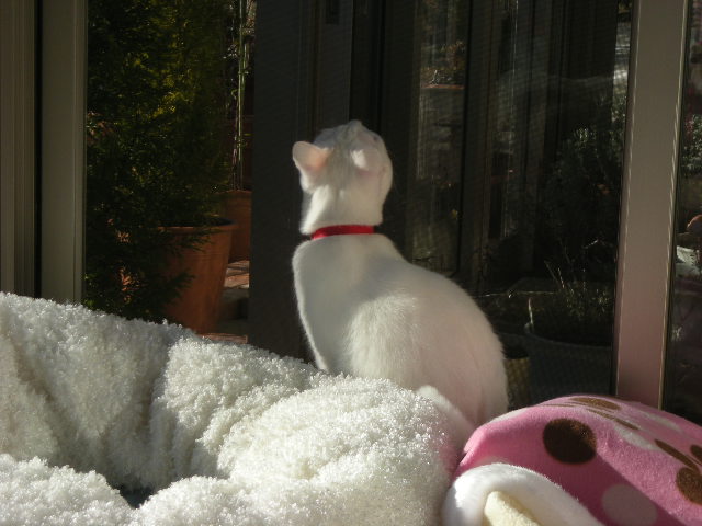 まさかそこまで暑くはないけど、暇をもてあましているにゃんこの為に網戸にしてみました。