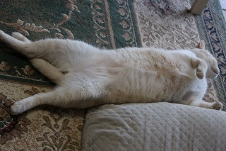 すぐにお医者さんにいけばよかったのですが、様子を見てしまいました。白猫が桃猫に見えるほど。