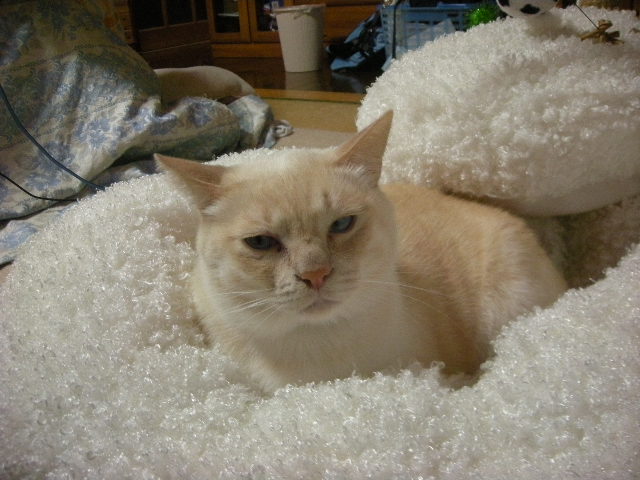 去年の冬はあんなに人気者だったのに、今年の冬は見向きもされなかったドーナツベッド。久々にモカが興味を示してくれました。