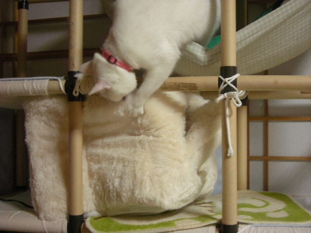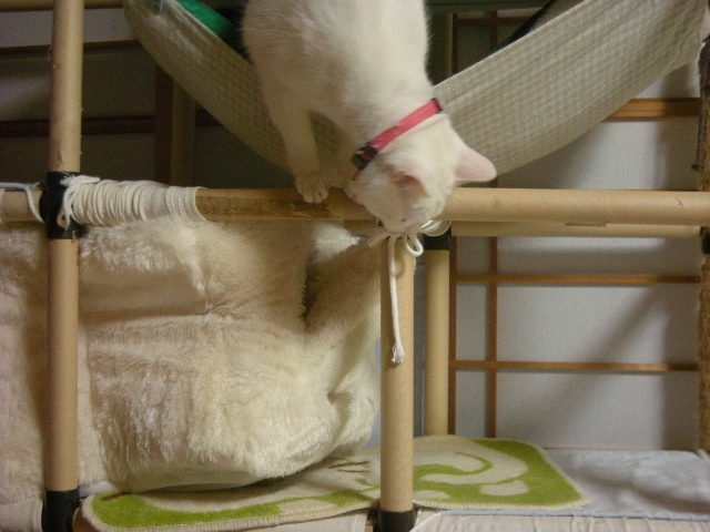 寒い時には、もっぱら高いところを根城にしているにゃんこたちですが、