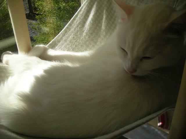 オークと兄妹。いつか白で碧眼の子をと願っていた娘が里親募集のサイトで見つけた子。うちに来たときには真っ白だったが、麿眉が発現。