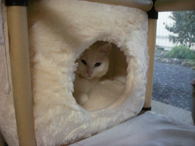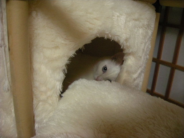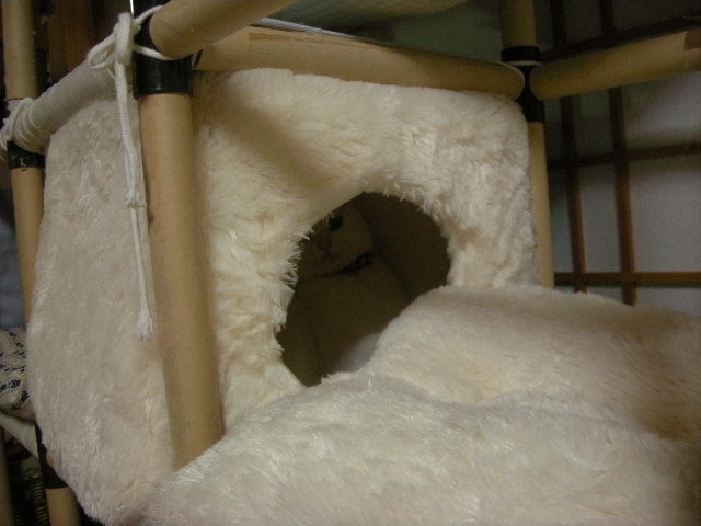 モカタワー設置のにゃんこハウスには、あったかデンキが入ってます。