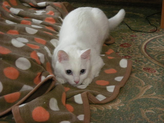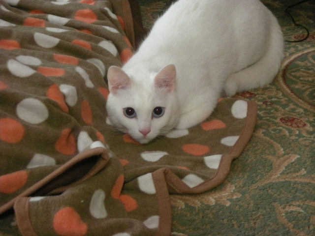 オークと兄妹。いつか白で碧眼の子をと願っていた娘が里親募集のサイトで見つけた子。うちに来たときには真っ白だったが、麿眉が発現。