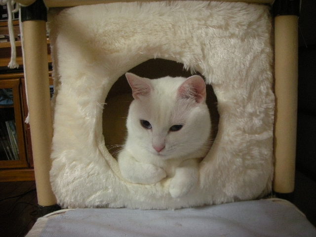 オークはもっと安全だと思われるような場所(棚の上とか)で、モカはもっと開放的な場所でくつろいでます。