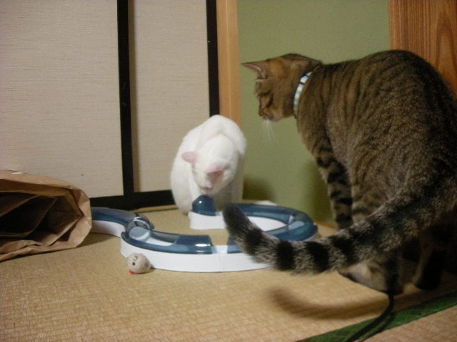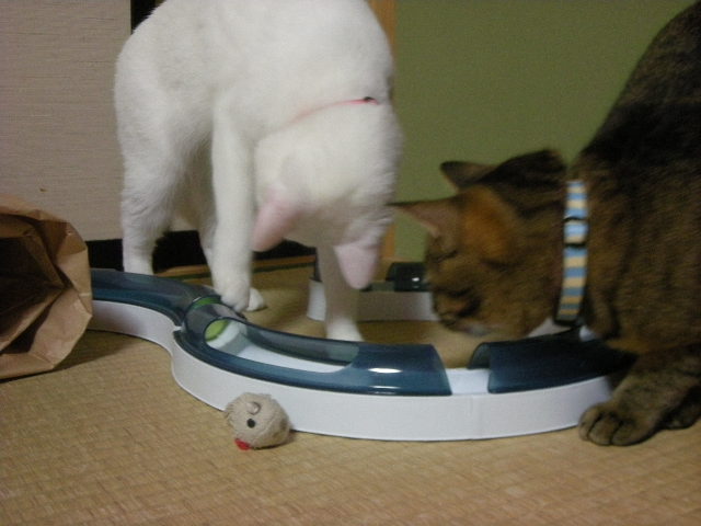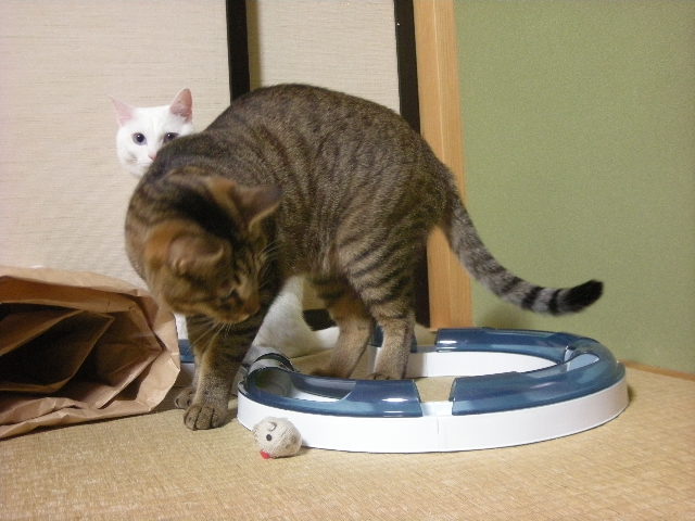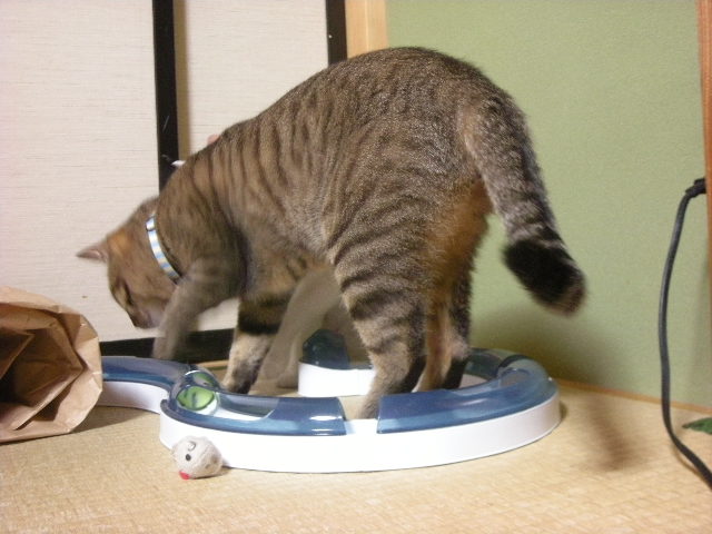 猫じゃらしもいいんですが、一人で遊んでくれるおもちゃは、私、大好きです。