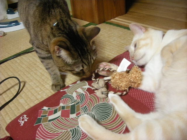 あ、こら。オーちゃん、モカ兄ちゃんがお利口に一人で遊んでるんだから盗らないの!