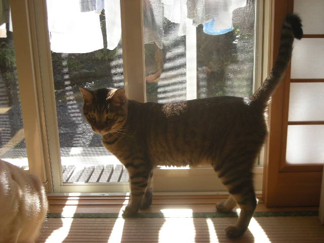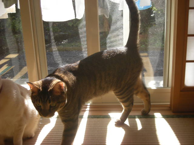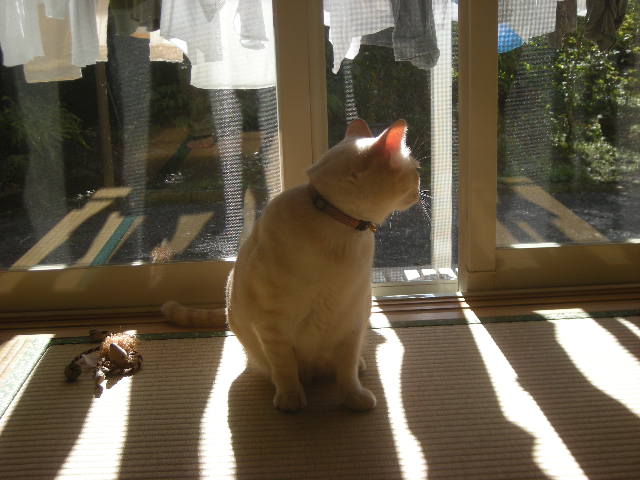 といいつつ、洗濯物の影に入っているモカ