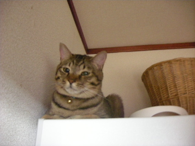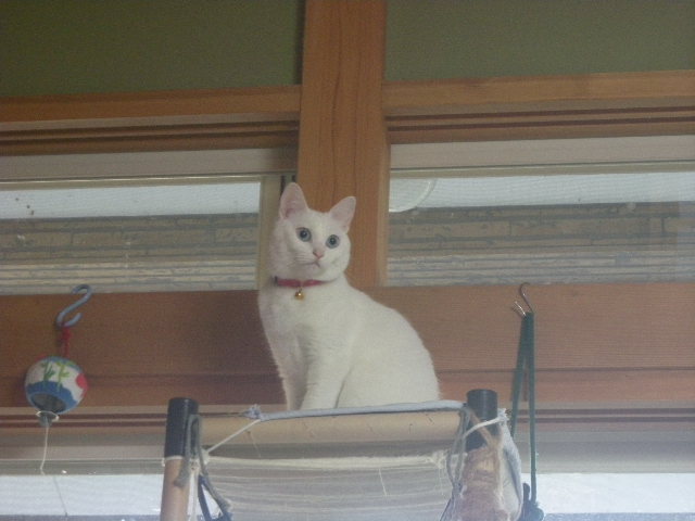 冷蔵庫の上は、猫が上れる一番高いところだもんね。