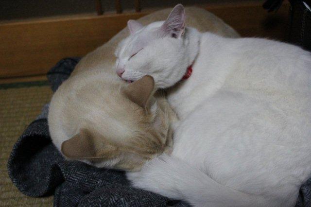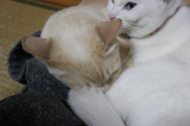 オークと兄妹。いつか白で碧眼の子をと願っていた娘が里親募集のサイトで見つけた子。うちに来たときには真っ白だったが、麿眉が発現。