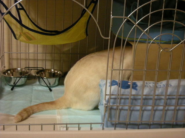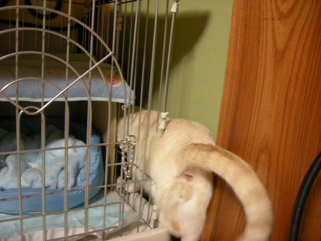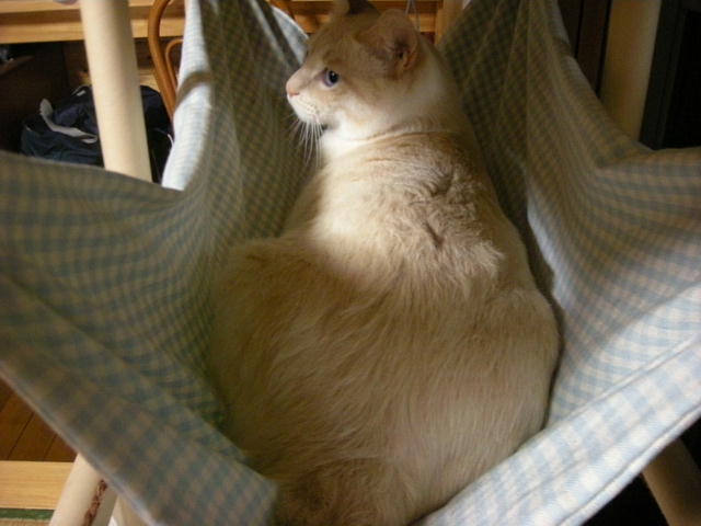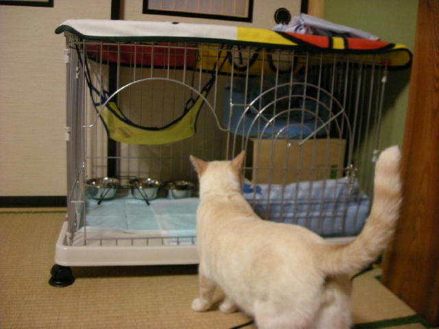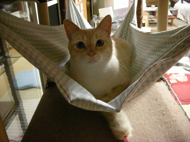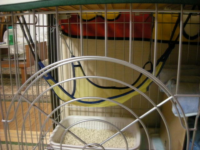 仔猫のゲージにもハンモックをつけてみました。これはフェレット用。前の子「もんど」が小さいときに使っていたもので、モカには小さすぎたのでしまっておいたもの。使ってくれるといいな。