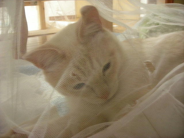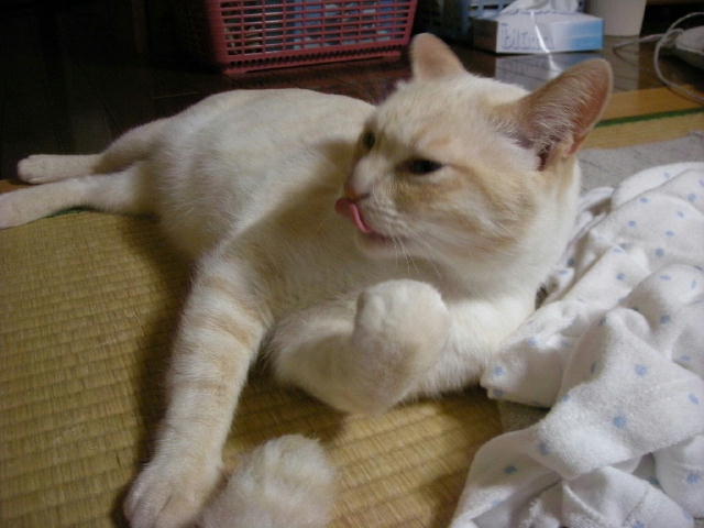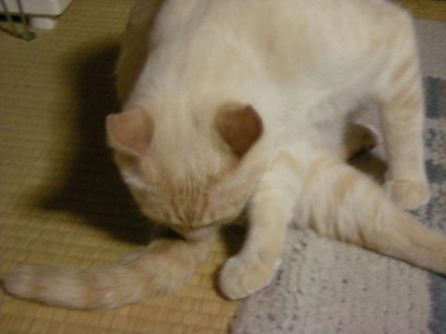 泥だらけで保護され、3歳にして去勢手術を受ける。飼い猫の経験があるのか、どれくらい野良猫だったのか、過去は一切不明。