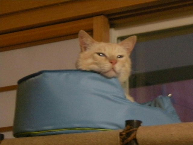 たいていは洗面所の窓から道の方をみているか、娘のベッドで寝ているかなのですが、家中探し回って見つからなくて、ふとみると、こんなところで見下ろしていることがあります。