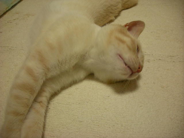 泥だらけで保護され、3歳にして去勢手術を受ける。飼い猫の経験があるのか、どれくらい野良猫だったのか、過去は一切不明。