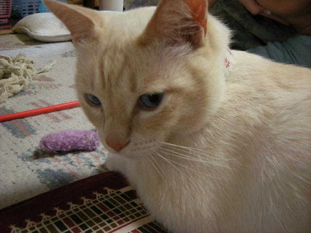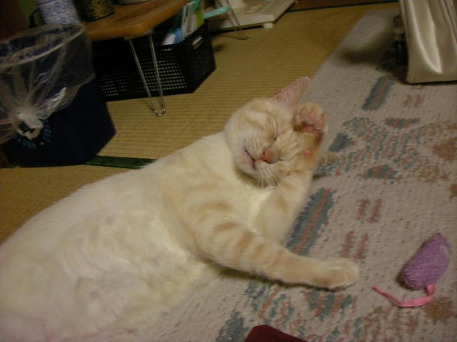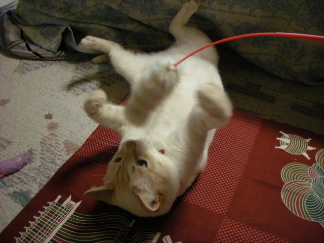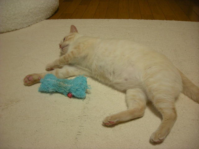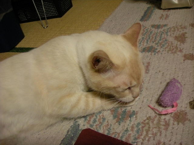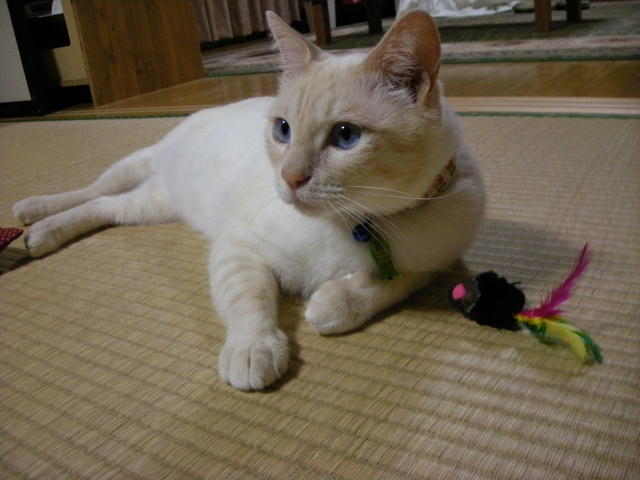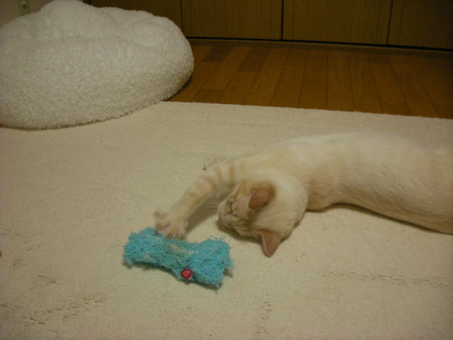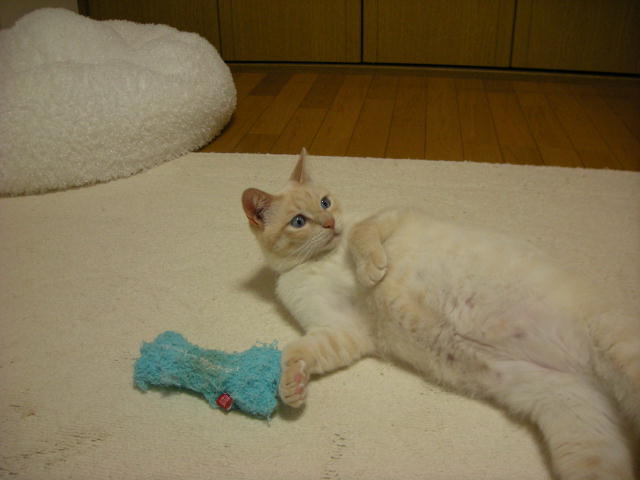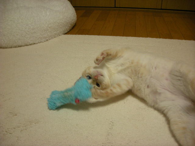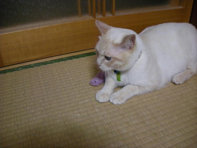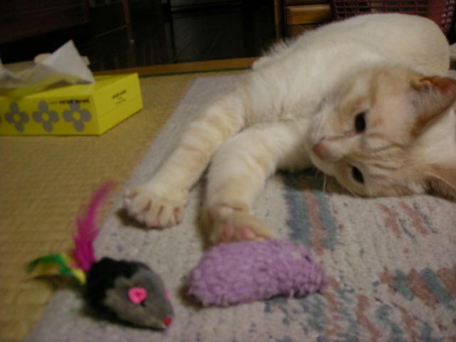 モカと遊ぼうとして、ネズミのおもちゃを投げたのですが、モカちゃん無反応。