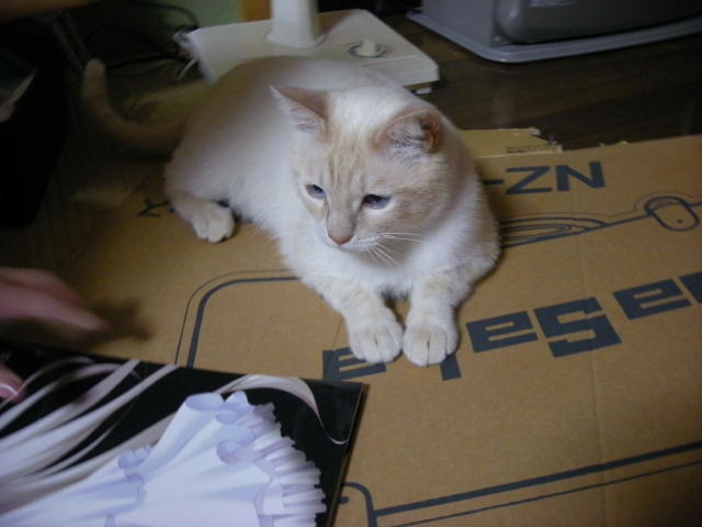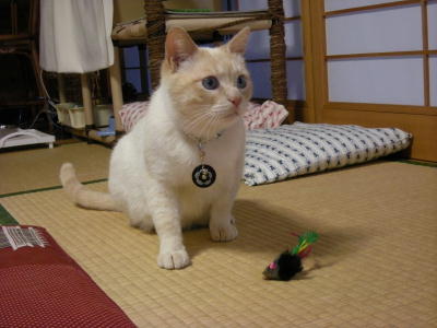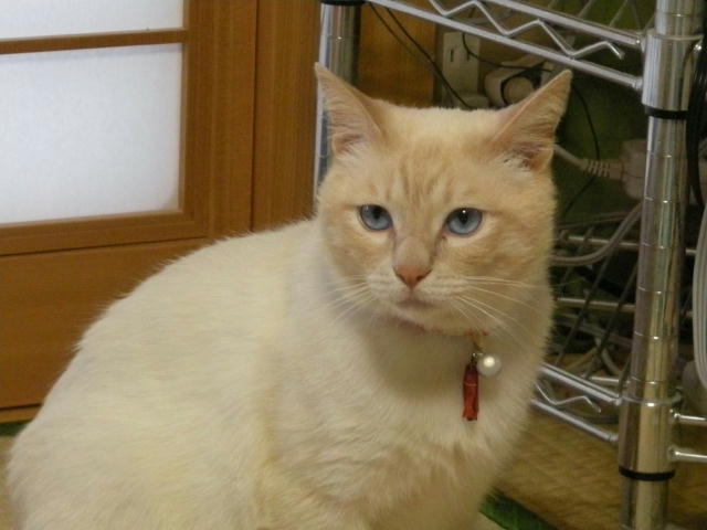 試しに鳴いてみたら、モカも「なうぅ」と返事をしながら走ってきて、人間しかいないのが不思議なのか、私を不審そうな顔で見上げました。