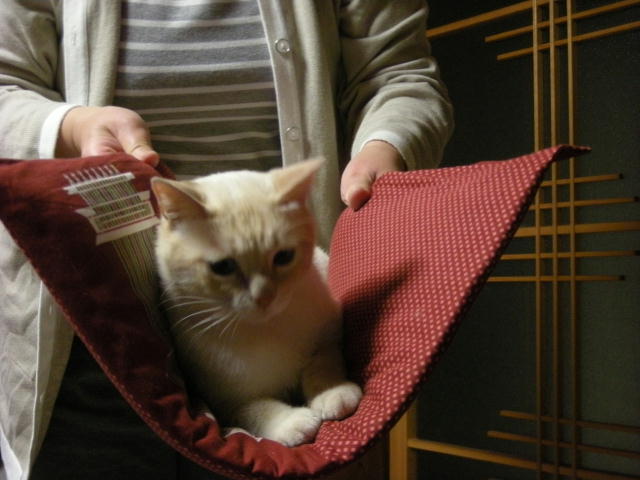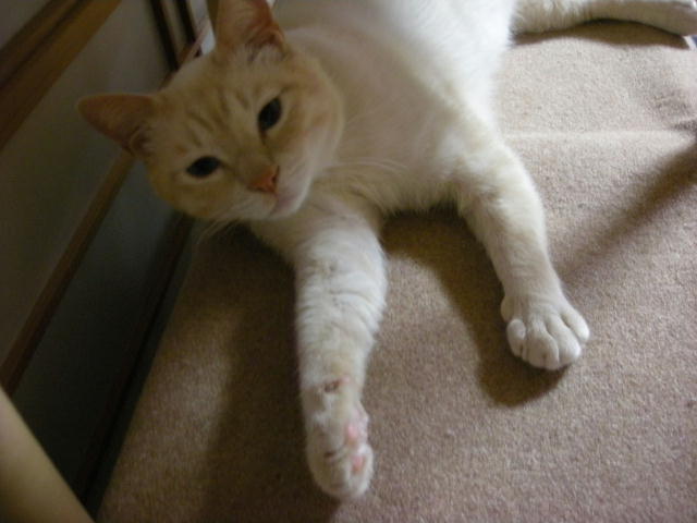 今日は寒かったので、こたつの温度も高めです。こたつでくつろいだ後、のぼせて出てきたモカちゃんです。
