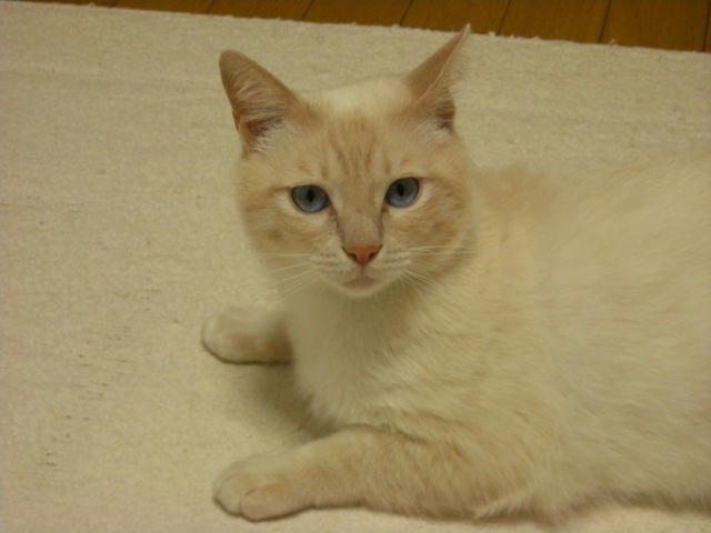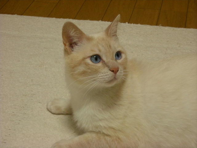 オークと兄妹。いつか白で碧眼の子をと願っていた娘が里親募集のサイトで見つけた子。うちに来たときには真っ白だったが、麿眉が発現。