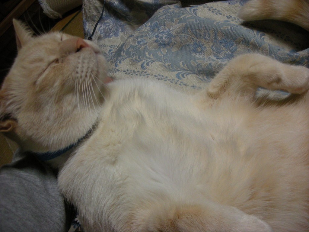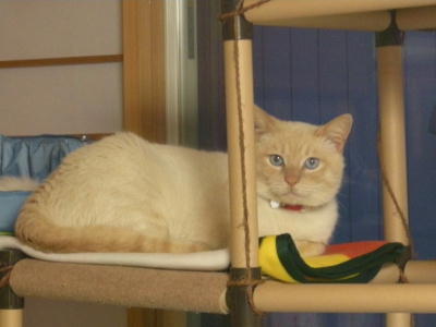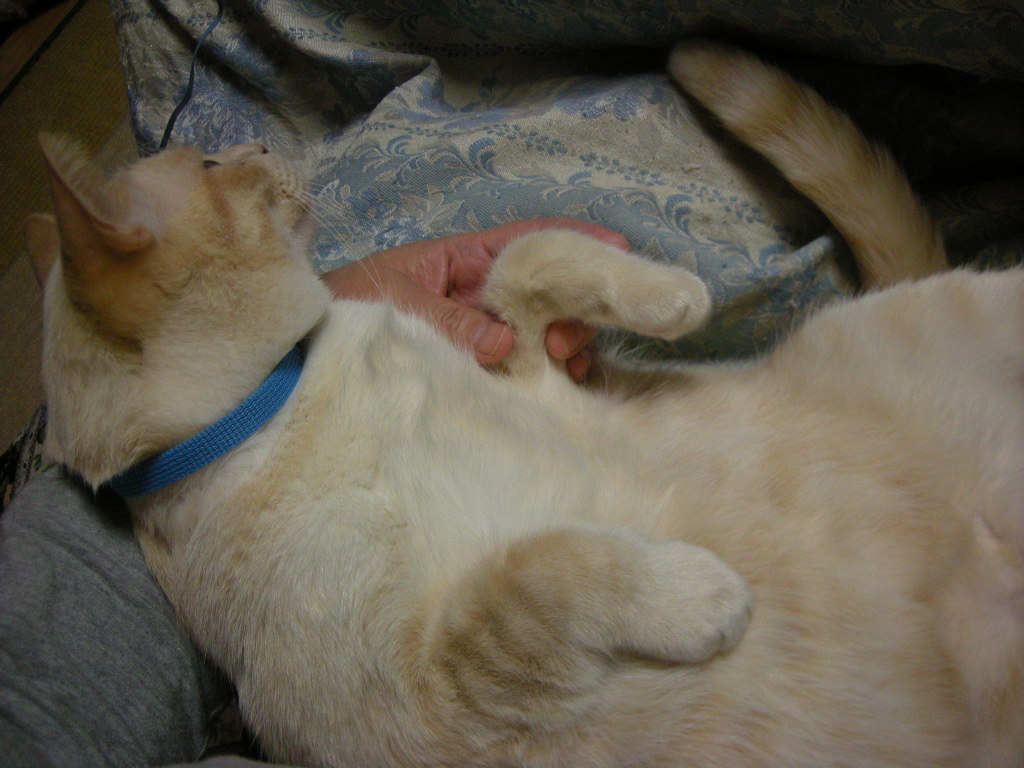 泥だらけで保護され、3歳にして去勢手術を受ける。飼い猫の経験があるのか、どれくらい野良猫だったのか、過去は一切不明。